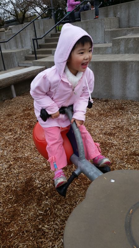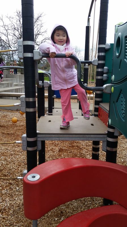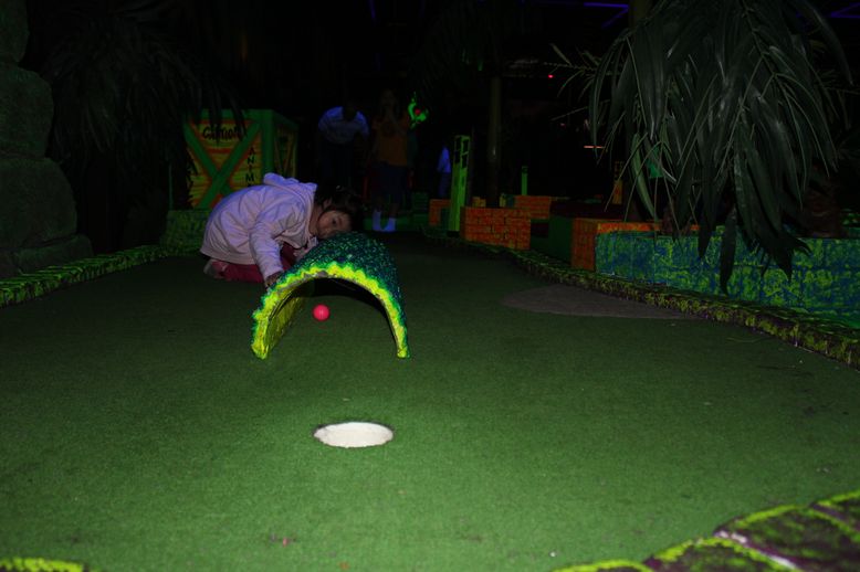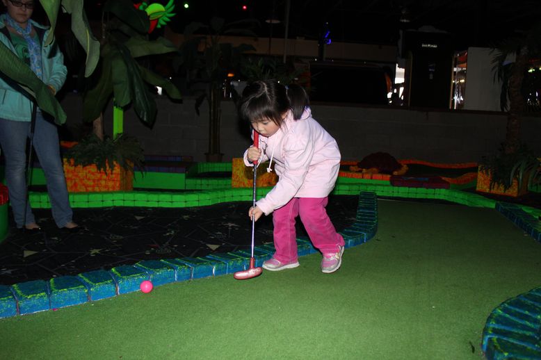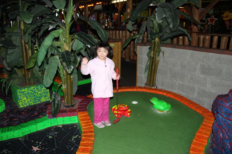 今天下午老爸带可儿去Safari Sam’s玩。我们玩了高尔夫球,还鼓励可儿去爬绳梯。以前可儿不敢独自爬绳梯的,现在胆子大了些,可以独自一个人爬上去了。