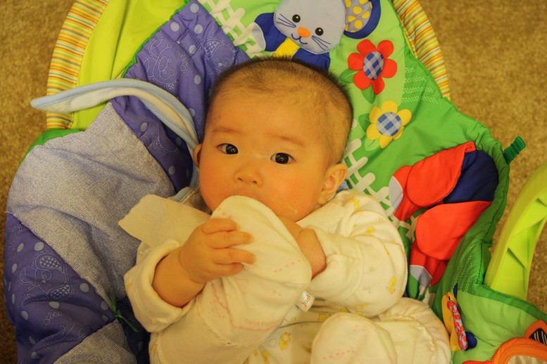 可儿半岁了。昨天晚上开始我们尝试给可儿逐渐增加一点辅食,可儿吃了一点后一觉从半夜十一点睡到今天凌晨五点。如果能够继续下去,我们就不必半夜起来给小可儿喂奶了。