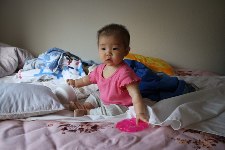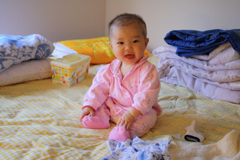 可儿在搬家的过程中度过了自己六个月的生日。现在可儿已经开始有点懂事了。可儿知道冲着老爸笑,要别人抱,还有一次竟然和老爸同时咯咯大笑。