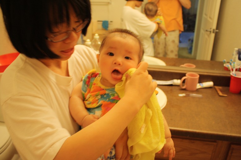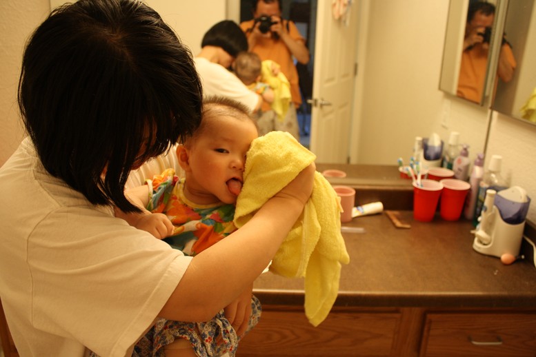 可儿平时很是调皮,爸爸妈妈给可儿擦脸的时候就喜欢吐舌头。