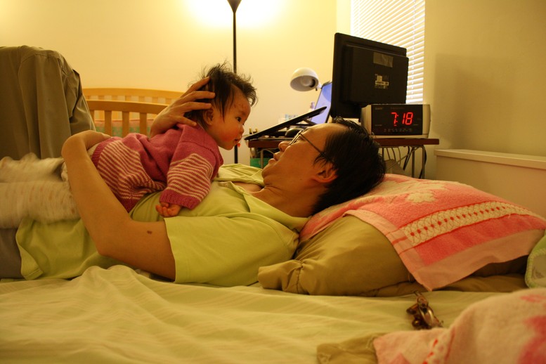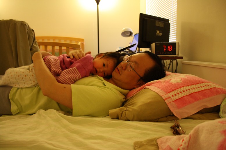 现在可儿对老爸的依恋比以前大幅度提高,达到了无与伦比的地步。今天晚上可儿小憩片刻,醒来后大哭不止,妈妈和奶奶无论怎么哄都不行。关键时刻爸爸出手,把可儿抱了起来。在两秒钟的时间内可儿就不哭了。